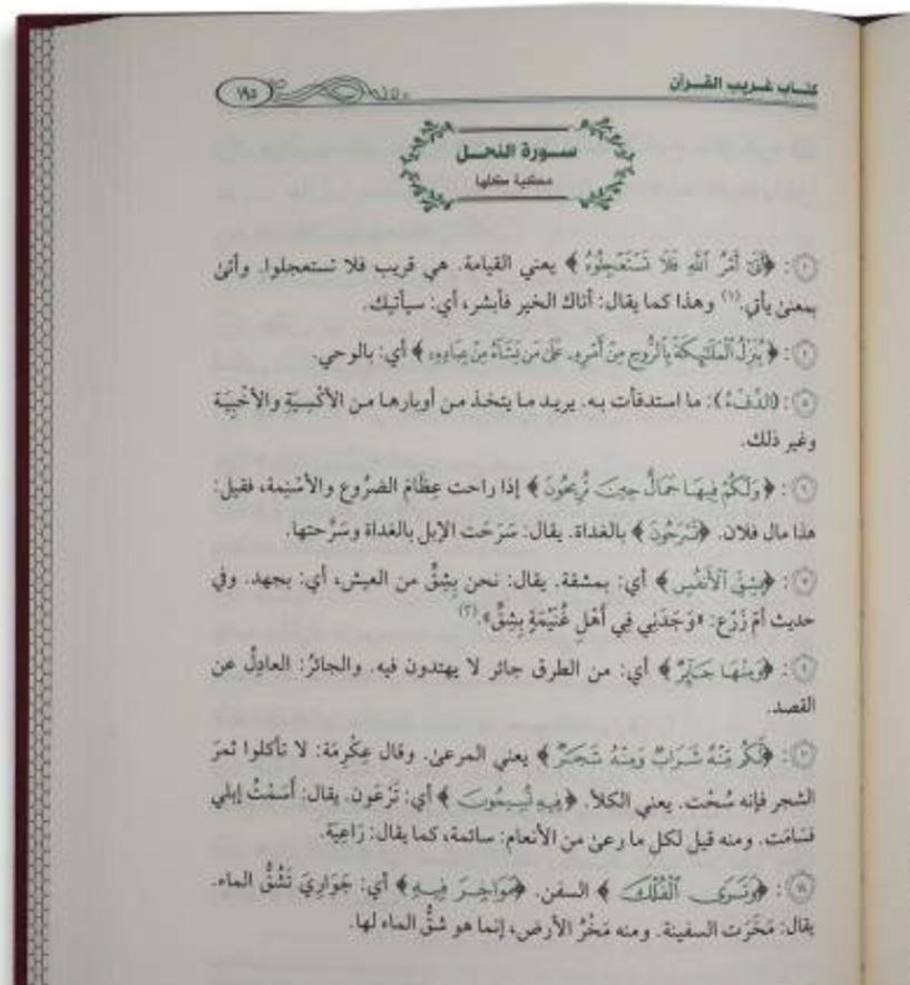 Ici un livre écrit par ibn Qutaybah رحمه الله savant du 3ème siècle de l’hégire, ce livre est axé sur les mots complexes présent dans le Quran, le cheikh explique le sens de manière claire et précise, ce livre est un excellent outil pour aider à la compréhension du Quran al karim.